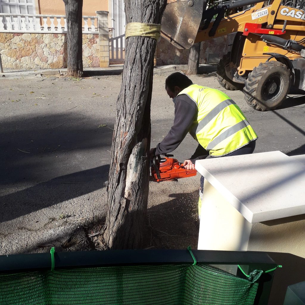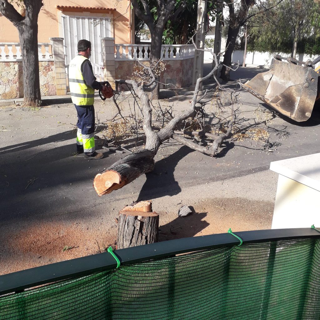 Ahora mismo, talan árboles de más de 50 años, en la calle Gessami de Cala Morlanda