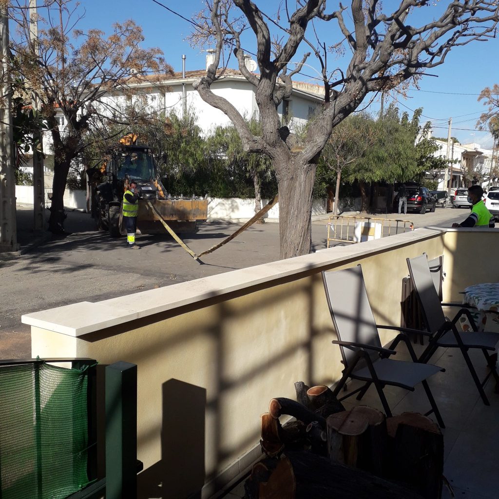 Una vecina de la calle Gessami de Cala Morlanda, nos acaba de dar la información de que, en estos momentos (miércoles 16 de diciembre), varios operarios con motosierras y una pala están talando un buen número de árboles de dicha calle.
