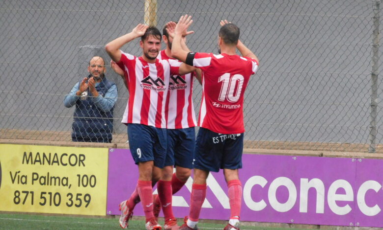 Al Manacor le bastó con 45 minutos. Contra todo pronóstico, el técnico local salió con sus tres arietes en punta y su juego ofensivo tumbó pronto a un endeble Inter Ibiza. Los rojiblancos salieron concentrados, metidos y valientes en el sistema inicial. Presionaban cada balón y el conjunto ibicenco se vio superado desde el minuto uno de partido. El tridente de ataque respondió a las mil maravillas y, sin Tià Sastre por lesión, Joan Marí cogió el relevo en el centro del campo apareciendo en todas las fotos del imponente encuentro. Los locales anotaban el primero en una magistral jugada combinada entre Gili, Rodri y Roig; el ‘nueve’ del Manacor anotaba el 1-0 y ponía por delante a su equipo aprovechando la titularidad que hoy le brindaba el míster Jaume Mut. Estaban todos dispuesto a seguir sumando y, en nada y menos, el bueno de Rodri se apuntaba el 2-0 tras plantarse ante el meta rival y tumbarlo al driblin. La grada sonreía y los locales circulaban el esférico alegremente en busca del tercero. El Inter Ibiza apuntalaba su ataque cambiando el sistema e irrumpía sumando un efectivo en la lanza de ataque. Poco le duró la intentona ofensiva al equipo visitante, quedándose con diez en el minuto 37 de partido. De nuevo se replegaron y el Manacor aprovechó los espacios entre el descontrol defensivo del conjunto ibicenco para anotar el 3-0. El bigoleador Roig se hinchaba de coraje y llegaba al segundo poste en un saque de esquina que peinaba Xisco Garí y le daba al Manacor la sentencia por los puntos.