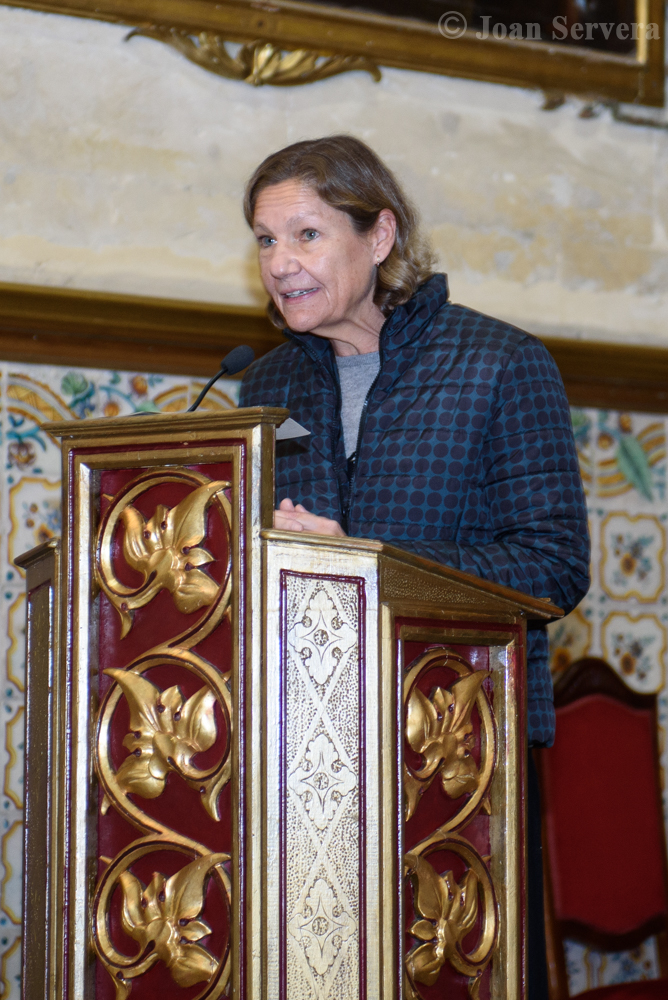 El dissabte matí, Maria del Mar Riera i Wilfried Praet explicaren a un bon grapat d’oients com havia estat la restauració, que ha viscut de primera mà. Des de les bastides col·locades a la façana fins a les tècniques emprades, Riera feu un recorregut per una restauració que comptava, d’entrada, amb alguns entrebancs, cap part del moble fou restaurat a la dècada dels noranta, sense que es puguin datar exactament intervencions anteriors. Mostrà, a més, alguns elements molt significatius com una carota situada al pis superior i elements més amables com els de figura d’àngel.