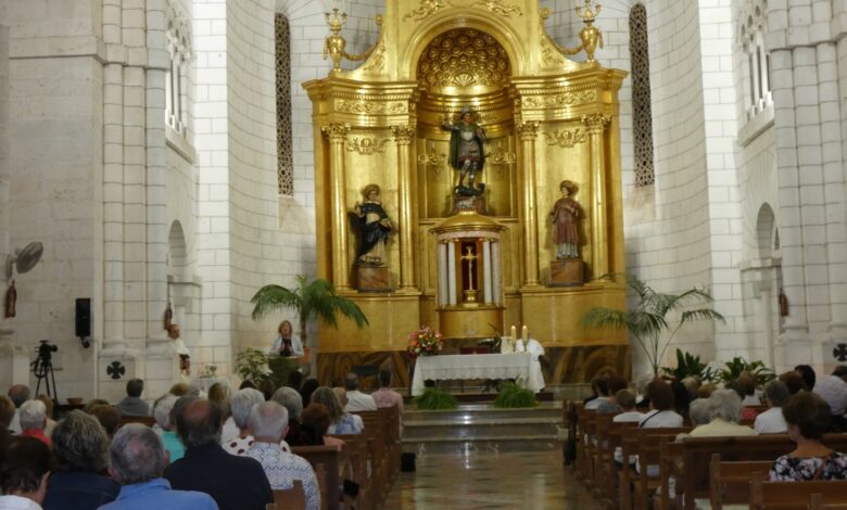 El dijous 29 a les 19h, amb els llums de l’altar apagats feien l’entrada el rector de la parròquia de Son Carrió, Jaume Mercant, el Vicari Episcopal de Patrimoni del Bisbat, Mn. Francesc Vicens, i els vicaris Rafel Umbert i Tomàs Mascaró, que concelebraren la missa en honor del Patró Sant Miquel. Poc a poc el retaule de l’església es va anar il·luminant i els assistents vam poder contemplar el restaurat retaule neoclàssic en tot el seu esplendor. El retaule consta de les estàtues de Sant Jaume, Sant Vicenç Ferrer, Sant Esteve, que abans de la restauració es creia que era Sant Llorenç, i al mig, Sant Miquel, Patró del poble de Son Carrió i que dóna nom a l’església.