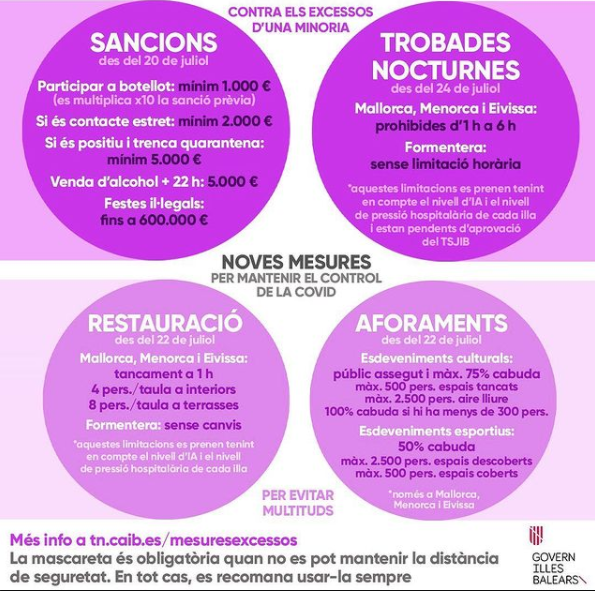 A partir del dijous, noves restriccions a Balears per aturar la pujada de contagis de Covid-19