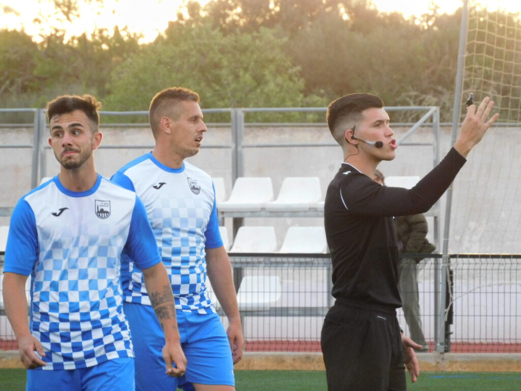 Árbitro: El colegiado Alejandro Cortiñas, asistido por Andreu Arnau y Lluís Picó, realizó un correcto arbitraje en el municipal de Campos. Solo fue amonestados del equipo visitante Mateu Mut.