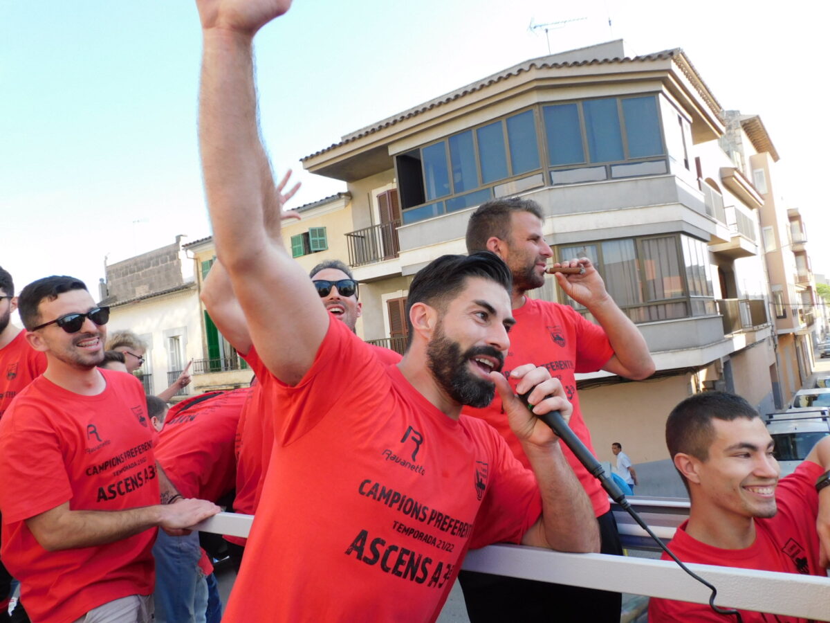 Manacor se tiñe de rossonera y pasea por la localidad un campeón llamado Inter. A Tercera División. El equipo dirigido, comandado y entrenado por Miquel Aguado consiguió el mayor de los premios deportivos de toda la historia, breve historia del club interista. Once años después de su creación, el Inter Manacor consigue ascender a 3ª División, sobreponiéndose año tras año a dificultades de toda índole que pronosticaban su desaparición cada verano. Campeones. De mérito y ejemplo, un equipo es mucho más que un amplio presupuesto deportivo, es algo más que no puede ser comprado con dinero ni estrellas. El Inter Manacor es una gran familia. “Inter Som Tots”-dicen y afirmo. Un equipo en el que ningún jugador cobra nada, se paga su chándal e incluso su cena de celebración y ascenso. Lo nunca visto. Menos mal que el Patronat d’Esports se acordó a última hora del conjunto rossonero y, tras muchas súplicas y esfuerzos, se logró festejar sobre un autobús descapotable el histórico ascenso del equipo interista por las calles de Manacor. Una rua de ensueño que, costeado por el regidor Artur Aguiló, pudo recibir el aplauso de muchos y muchas manacorinas que salieron de sus casas, balcones y negocios para agasajar al campeón.