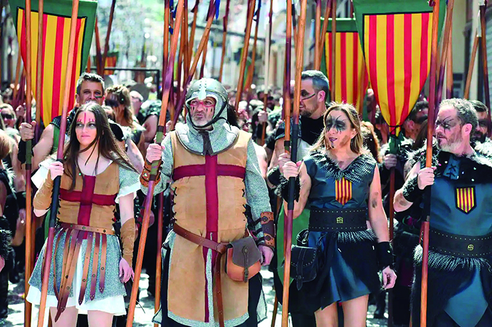 La idea central del viatge és conèixer de primera mà la festa de Moros i Cristians d’Alcoi. Han sucumbit a la pressió econòmica i turística i passen la celebració al cap de setmana més proper a Sant Jordi. No ens podem imaginar fer el mateix a Manacor per Sant Antoni perquè hi pugui venir més gent i s’hi girin més doblers. De cap manera! El matí del dissabte de la festa, ara ja sempre en dissabte, es fa l’entrada cristiana i el capvespre, la mora. És una cosa grandiosa. Si deim que hi desfilen sis mil persones entre les quals hi ha dos mil músics segurament exagerarem molt poc. Si deim que es lloguen més de vint mil cadires per gaudir d’un lloc privilegiat durant les set hores entre les dues entrades tampoc exagerarem gaire. Si deim que tota una ciutat de prop de setanta mil habitants surt al carrer direm tota la veritat. I la gent que desfila no ho fa amb un senzill vestit de campinorat o abillada amb roba de carrer. No, hi ha doblers i els responsables de les filades no miren prim a l’hora de posar «boato», aquest és el terme, a rompre. No en parlem ja si aquell any et toca ser capità cristià o capità moro, això ja no està en mans dels mortals sinó que fa falta molta potència econòmica per poder sortir i lluir en condicions. S’hi ha d’anar mínim un pic en la vida…