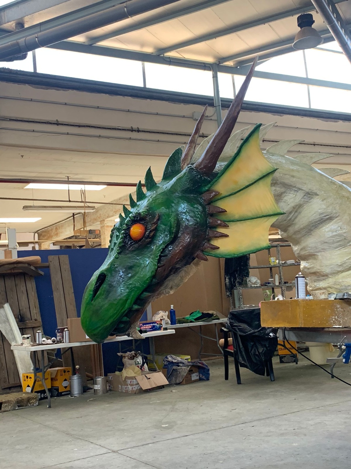 Era un importante factor a tener en cuenta. Por ello, este es uno de los motivos por los que me alegro especialmente de que hayan contado con nosotros para realizar esta complicada labor. Parece que no, pero Manacor tiene una gran escuela de fogueroners de Sant Antoni. Trabajar en ello es complicado, pero además conseguir mantener estas esculturas durante tanto tiempo en el exterior era otro factor a tener en cuenta. Yo ya había realizado alguna figura en Artà y Son Servera utilizando la fibra de vidrio, con el fin de perdurar las obras. Sabíamos que era el material idóneo para incrementar la protección de las figuras, pero también debíamos tener en cuenta las limitaciones que este producto implica, ya que este material es difícil de utilizar y requiere mucha protección. Además, estropea todos los pinceles después de usarlos sobre el compuesto y debe utilizarse mucha resina de poliéster para ejecutar cada escultura. La textura también es un factor a tener en cuenta, ya que tiene un acabado muy alisado, como podemos ver con el dragón. En cambio con el árbol, me interesaba un acabado rugoso, con el fin de aparentar mejor el formato de tronco. Como ya había realizado un disfraz de tronco, pensé en utilizar el mismo tipo de material, la espuma de poliuretano. Este es más frágil, pero puede aguantar bien en el exterior. Lo que no aguanta este, ni ningún material, son las personas incívicas.