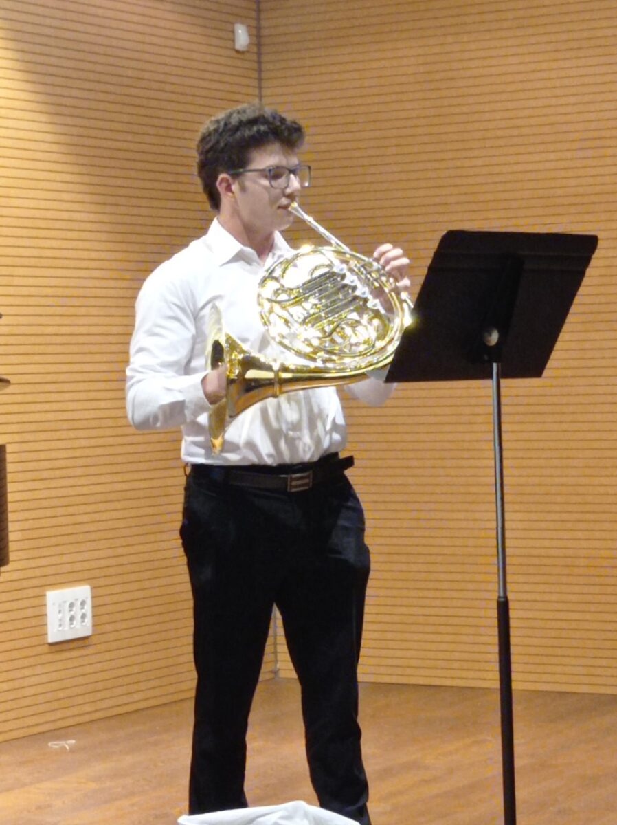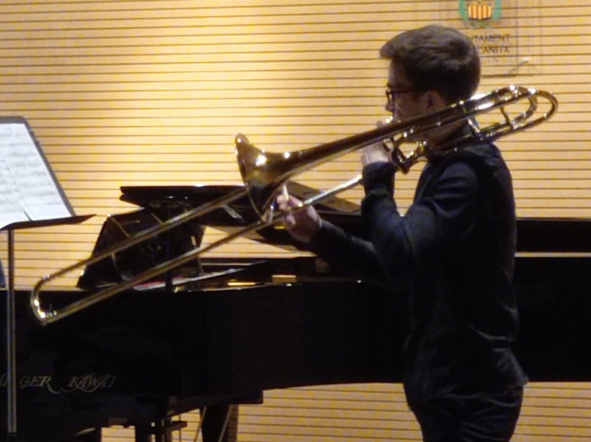 Continuà el concert amb la intervenció de Pere Serravinyals Mestre qui al trombó interpretà les obres Cavatine de Saint-Saëns i Romança de Weber.