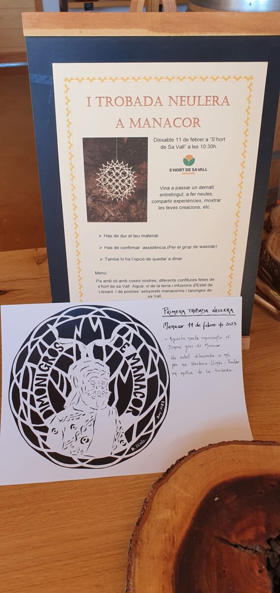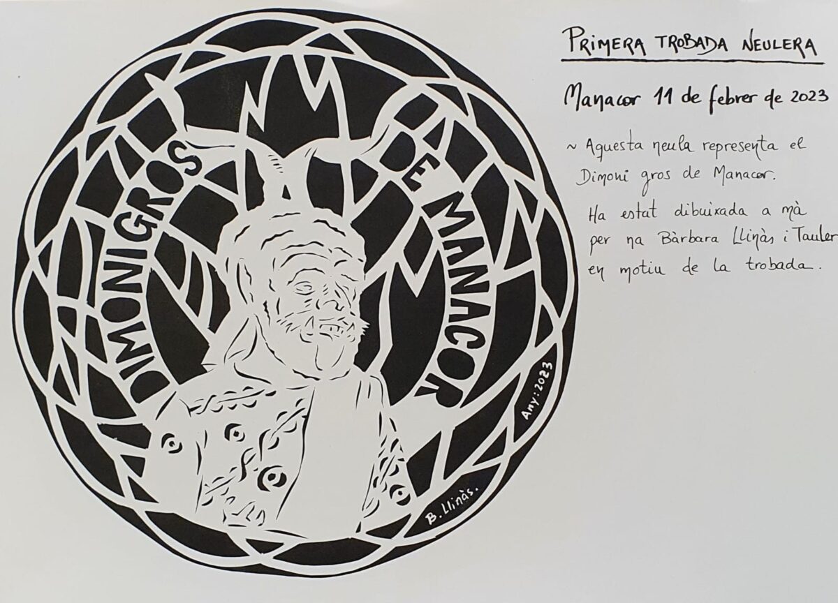 Per aquesta I Trobada, la manacorina Bàrbara Llinàs i Tauler va dissenyar i dibuixar una neula ben manacorina que representa el Dimoni Gros de Manacor, i que fou l’obsequi que van rebre tots els assistents.