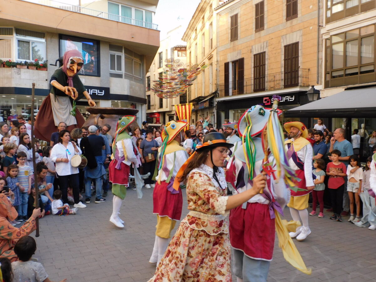Además de música, el jolgorio también estuvo inmerso en otros hitos descritos en el programa. Animación infantil, torneo de tenis, carrera popular, exposiciones artísticas, talleres culturales, teatro, cocina… de todo, y por supuesto la ‘Trobada de Gegants’. La comparsa de ‘gegants’ desfiló desde la plaça de Sant Jaume, a partir de las 19 horas, y marchó en hilera y comunidad hasta la plaça de sa Bassa, en donde se llevó a cabo un baile popular de toda la ‘colla gegantera’, a cargo de la Associació Cultural de Sant Domingo.
