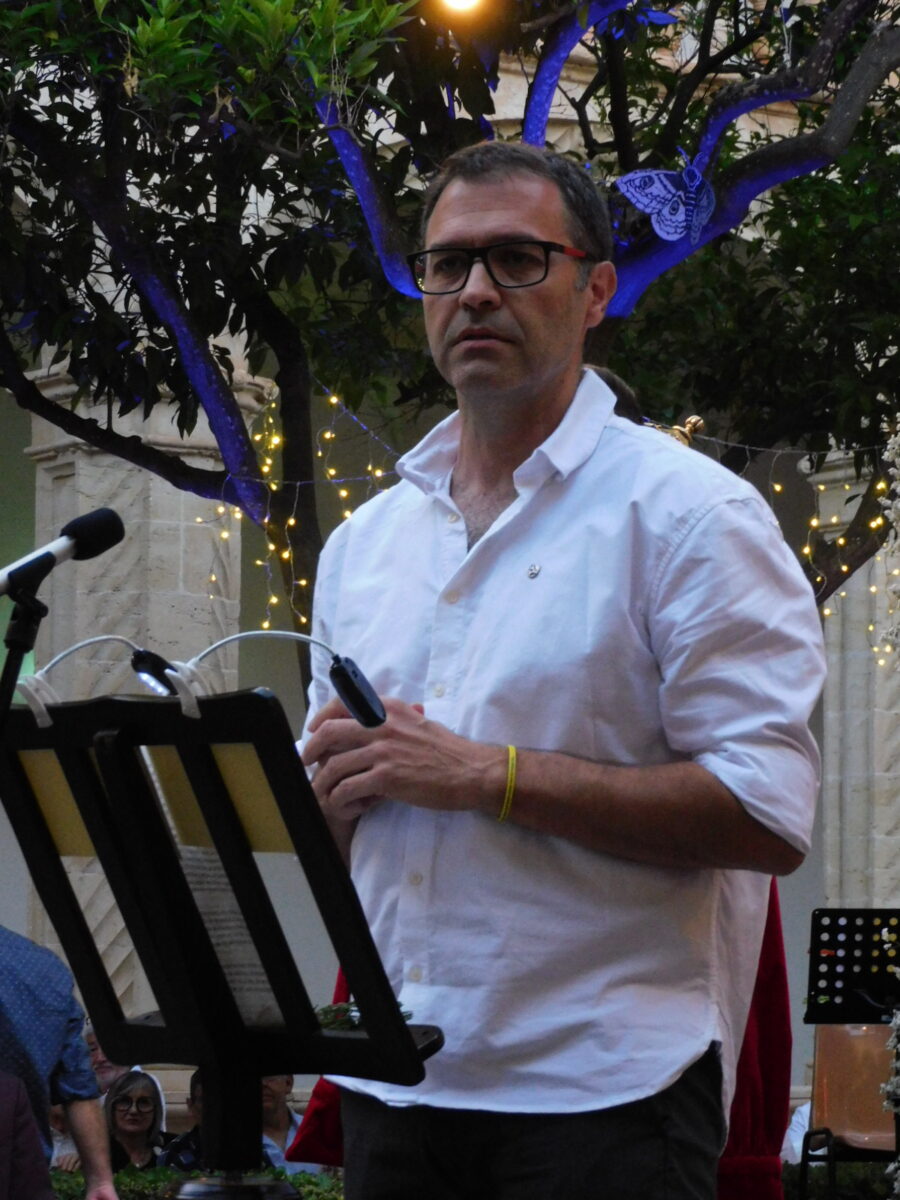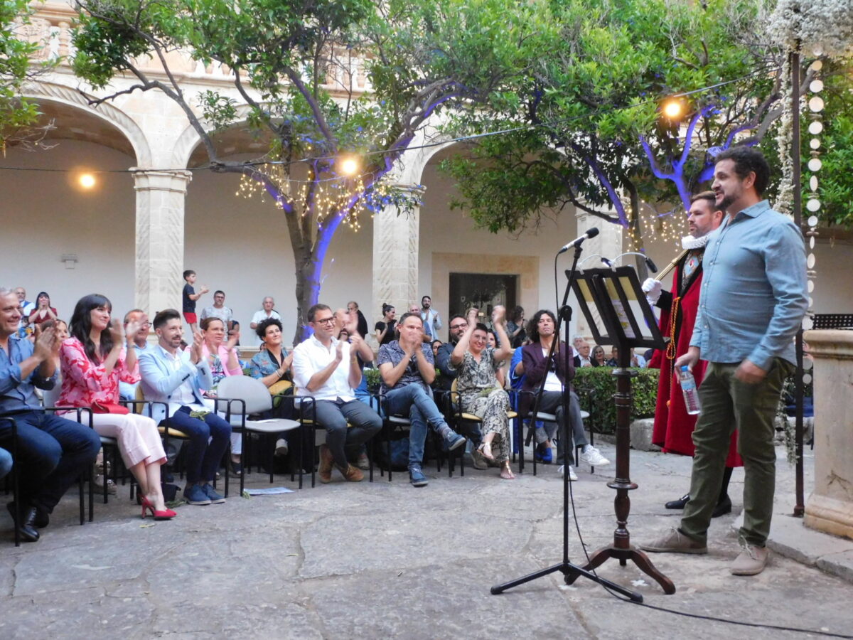 Ya en el Claustre de Sant Vicenç Ferrer, las autoridades tomaron asiento y, con el jaleo manacorí presente y comprometido, els Cossiers se arrancaron en pleno claustro a ofrecer los últimos bailes de la noche. Uno tras otro y a cada uno mejor. Emocionante y precioso el momento de reunión generado en el interior del patio del Convent en donde por fin, sin mascarilla alguna, jóvenes, niños, mayores y adultos pudimos amontonarnos sin miedo alguno. Felices y dichosos todos al mirarnos de frente y, bajo el amparo de una sociedad unida, prestamos plena atención a la voz del pregonero ‘Xen’, dando comienzo un sincero y emotivo discurso compartido. Lo expresó con palabras, pero su gesto era clave para comprender todo lo que el propio pregonero quería expresar. De Madrid recaló en Manacor hace escasos años y, ofreciendo una visión interna de manacorinidad, a la par que una mirada analizante y comparativa con la Madrid que dejó atrás, consiguió transmitir el rico precio de la cultura y sociedad que tiene Manacor. Todo aquello que no somos capaces de apreciar o ver, Sergio Tejera lo supo poner sobre una tarima, observarlo y darle el valor que merece. También, antes de terminar el discurso, nos cantó y nos encantó a todos recibiendo el aplauso del conjunto manacorí enternecido con las buenas palabras dedicadas a Manacor.