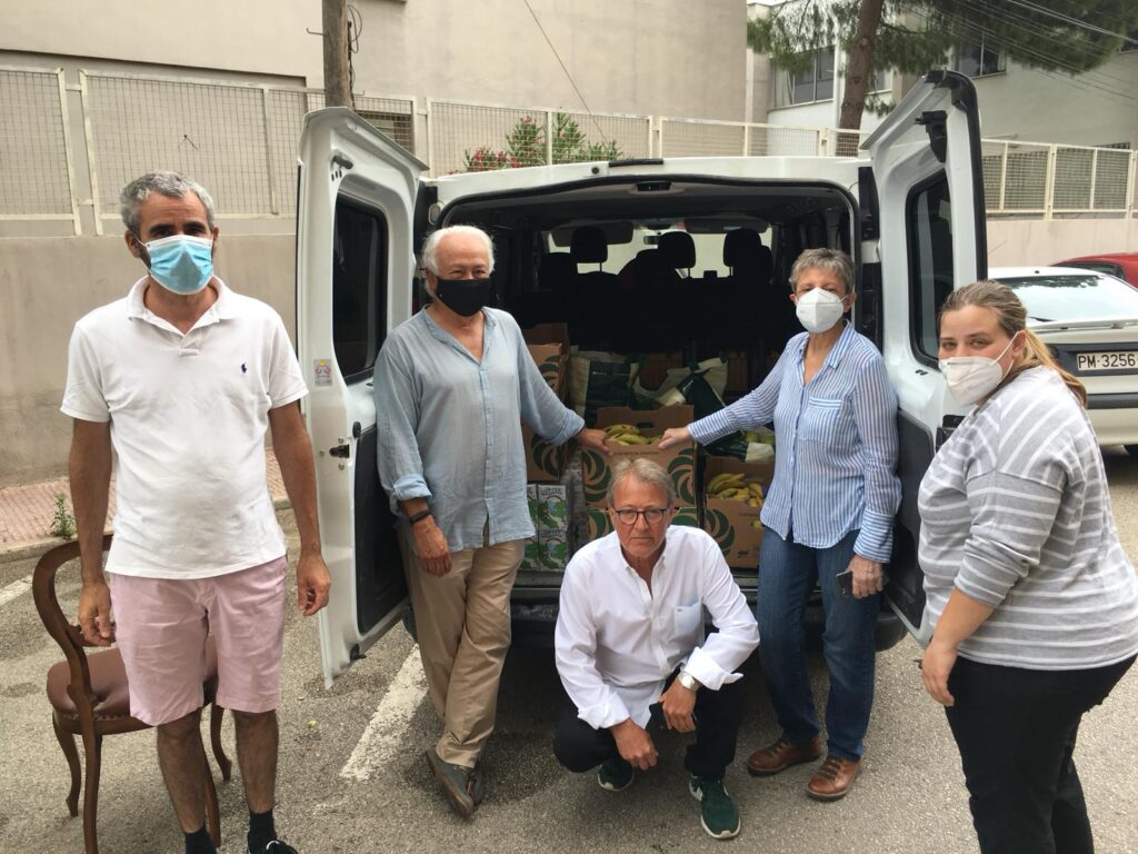 D’ençà la pandèmia hem fet dues coses: comprar a preus baixíssims perquè pensàvem que la situació actual no és per anar a demanar doblers als que ho passen malament, que són els comerciants que no han pogut obrir els seus comerços, i a sobre dir-los Regalat… per exemple, un litre de llet ens costava 0,30 euros -gairebé a preu de productor-, ens van vendre ous, formatge, iogurts, farina, fruites etc. també molt barat. L’entrega d’aliments va ser possible gràcies a la col.laboració entre d’altres de Agama, Agroilla, Avícola Ballester, Distribucions Servera, etc. Es feren entrega de 1.000 dotzenes d’ous i 3.000 litres de llet, a més de formatges, iogurts, fruites, etc. Les primeres associacions que arribaren de ben matí a carregar els productes, varen ser els voluntaris del Banc d’Aliments de Porto Cristo i s’Illot/Cala Morlanda, coordinats per Toni Font. Després seguiren Creu Roja Manacor, Càritas Diocesana i el Banc d’Aliments, que és una garantia a la nostra comarca. També acudiren a recollir aliments Càritas Cala Millor, sa Coma, s’Illot, Cala Bona, Capdepera, i pel Convent d’Artà, Fra Pere Vallespir i Fra Tomeu Pastor, ja que degut a l’actual crisi han augmentat el nombre de famílies que acudeixen a Càritas Cala Millor, i també al Convent d’Artà, que és on es canalitzen les ajudes. La nostra idea era comprar productes destinats als nins. Nosaltres volíem ajudar, però mantenir-nos al marge del protagonisme, per això ho vam lliurar a Càritas per a la seva distribució. Però ha passat un problema, amb les llargues cues per demanar menjar, sobretot de la població autòctona, ja que molts no havien pensat mai veurer-se en una situació com l’actual, i els feia vergonya anar a les cues a demanar, per tant, el que vam fer va ser enviar menjar a les monges Benedictines, ja que sabem que a vegades gent mallorquina acudeix a elles, a l’escola de Sant Francesc, ja que tenen nins, a la Creu Roja i a Càritas Porto Cristo i de Cala Millor de Fra Pere Vallespir, ja que tots ells sí que coneixen a aquestes famílies mallorquines necessitades, moltes amb infants petits, i els han fet arribar els aliments. Per això ens interessava arribar a aquest grup de gent, que no van a les cues i a través d’ells ho vam aconseguir.