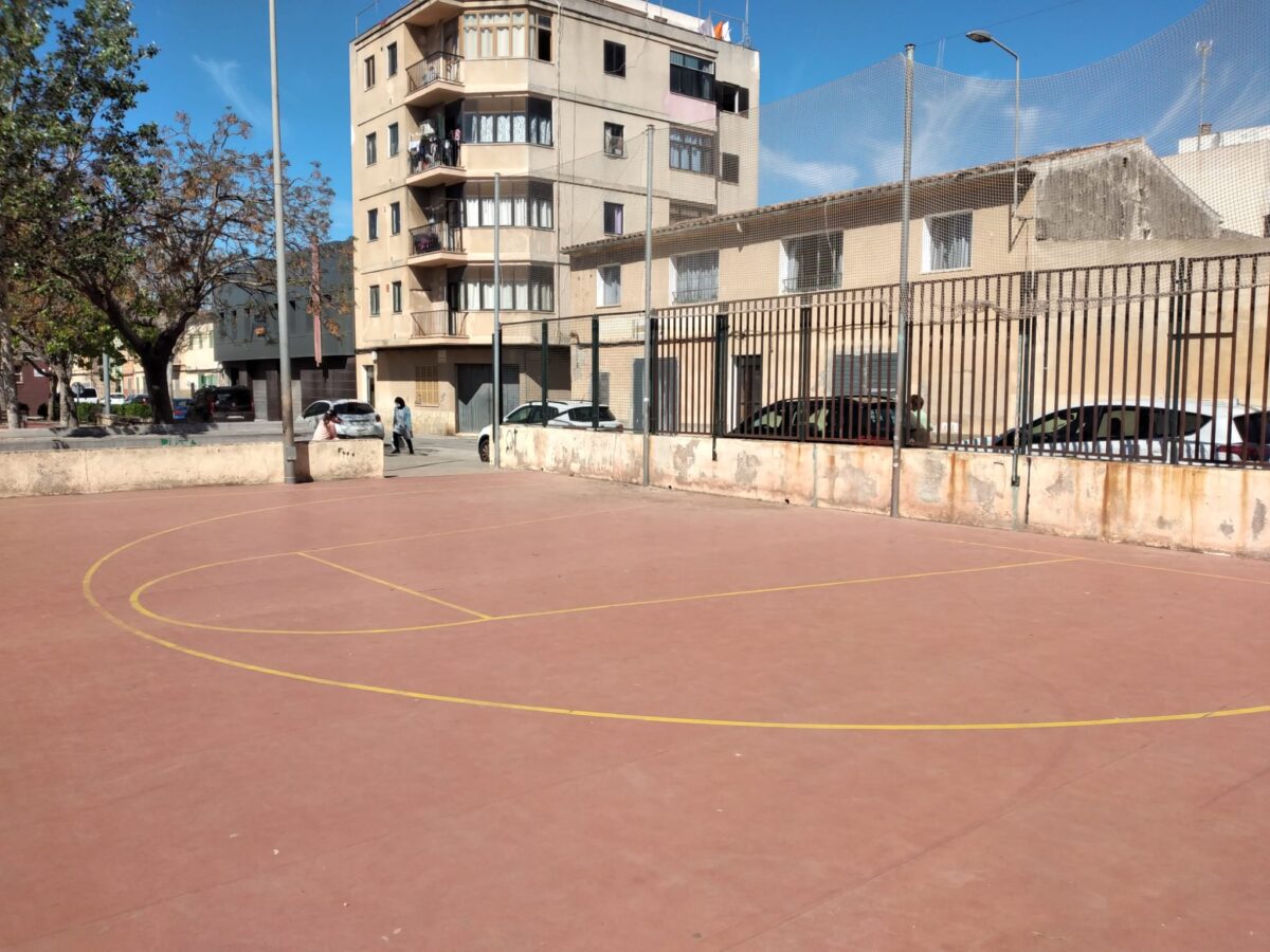 En lo que se refiere a la plaça Indústria, de la pista polideportiva, en la que hace años se practicaba el baloncesto y el futbito, quitaron las canastas de basquet y las porterías, sin que en años hayan sido repuestas.