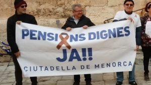 De manera semblant, a l’illa de Menorca Pensionistes per la seva dignitat de Ciutadella, juntament amb la CGT-Menorca i l’Associació de Vesins de sa Colàrsega, es van concentrar el dissabte dia 6 i dilluns dia 8 a la plaça de la Catedral.