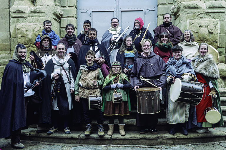 Enguany hem tornat a formar un grup nombrós, érem vint persones, tots amb vestimenta medieval. Només veure’ns passar ja era tot un espectacle. Xeremies, flabiols, tabals, bombos i tamborins, tarotes, trombó i un grapat variat de diferents percussions. No passàvem desapercebuts.