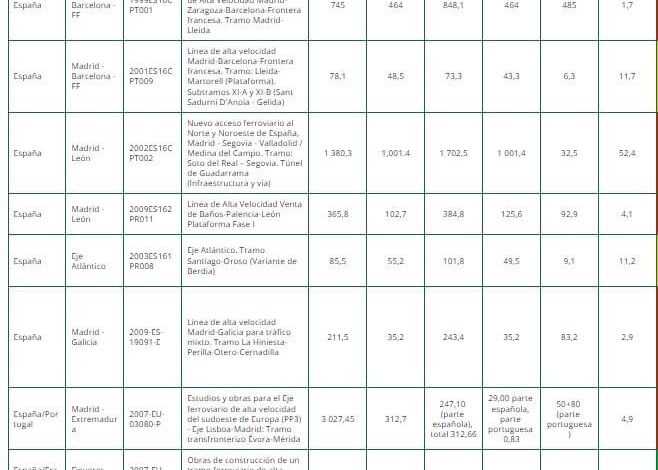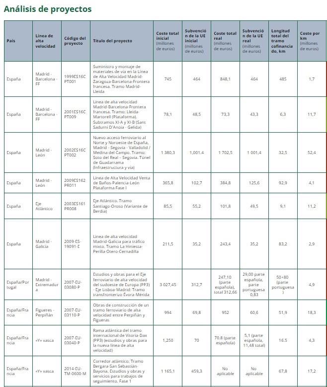 Si culejau per l’internet la «plana web» del Tribunal de Comptes d’Europa i hi cercau l’auditoria sobre els trens que la Unió Europea ha pagats (o ha ajudat a pagar), hi trobareu un estudi que diu que construir 1 km (un quilometre!) de via de tren de gran velocitat «AVE” de Madrid a Lleó, costa 52.4 milions d’euros.