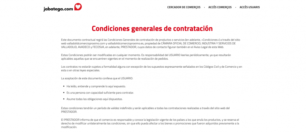 Los usuarios de www.jabatega.com se adhieren a las condiciones generales de contratación de… ¡¡LA CÁMARA OFICIAL DE COMERCIO, INDUSTRIA Y SERVICIOS DE VALLADOLID!!
