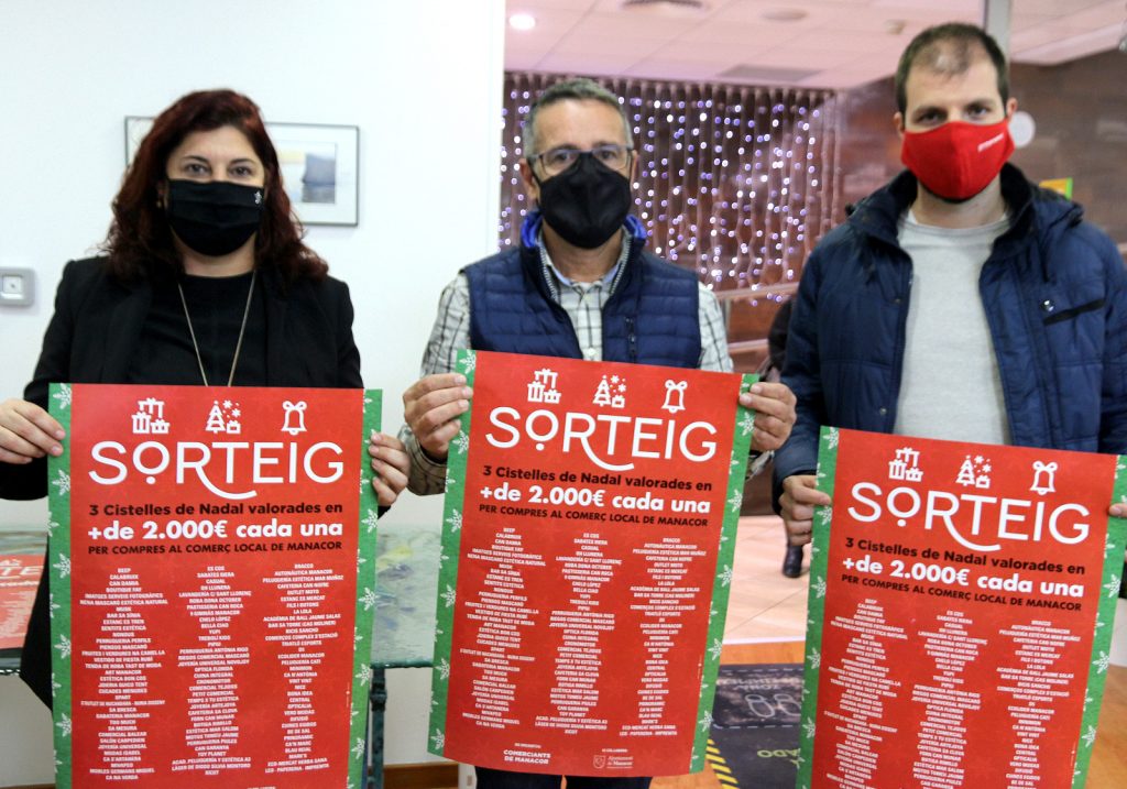 El Presidente de PIMEM Manacor, Mateu Català, anuncia que PIMEM, con la colaboración del Ajuntament de Manacor y de alrededor de 100 comercios de la ciudad, sortea hasta 3 grandes cestas de Navidad con un valor de contenido de más de 2.000 € cada una. Los ganadores o ganadoras de cada una de las tres cestas, serán quienes presenten un billete del sorteo coincidente con uno de los tres primeros premios de la lotería del Niño, sorteo a celebrar el 6 de enero de 2021.
