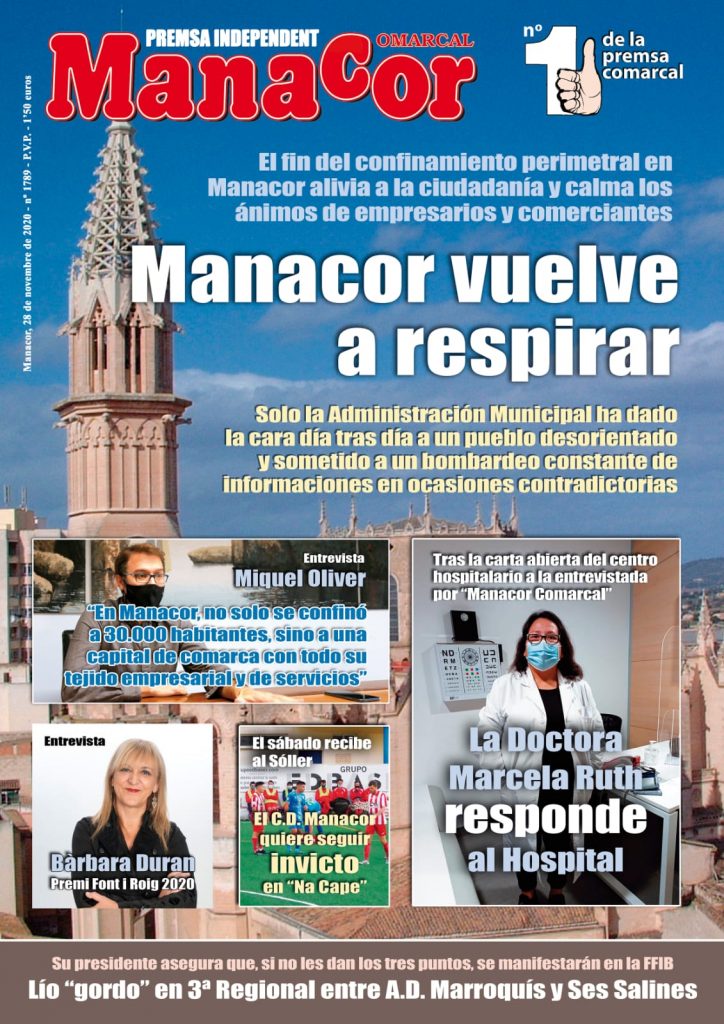 Portada de «MANACOR COMARCAL» del 28 de novembre de 2020