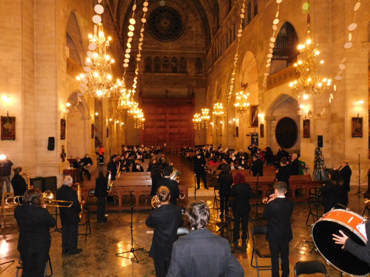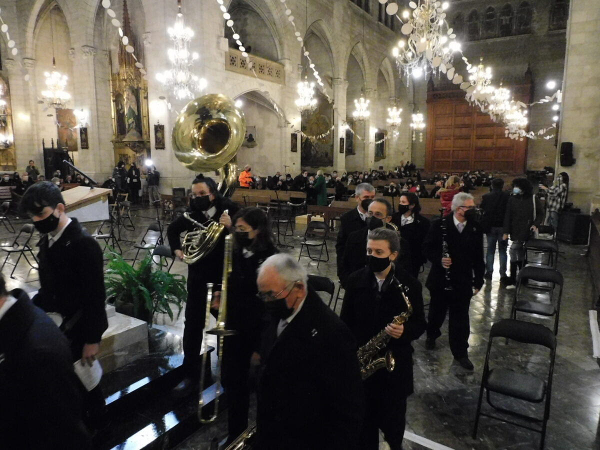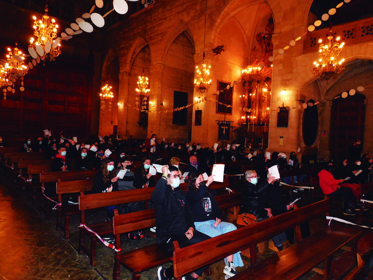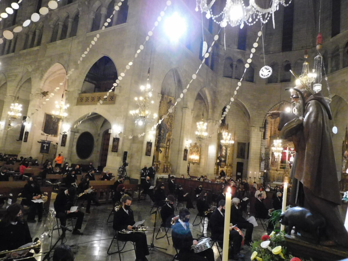 Estuvieron a la altura, aunque la normativa obligó a los asistentes a no levantarse de la bancada mientras se estuviese clamando al santo. Aun así, con los folletos en alto, los asistentes tomaron las riendas de la situación, desfogando sus gargantas y alabando constreñidos en una baldosa toda su devoción a Sant Antoni. Ondeaban las hojas del santo canto sobre las cabezas de los feligreses manacorins. La Banda en pie coreaba los sonidos, mientras Antònia Bassa dirigía la espectacular orquesta. El chupinazo fue metódico y compasado por todos. La voz en uno, aun faltando volumen, todos se unieron a la causa y, ‘els vilans de Manacor’ fueron representados en la Iglesia Nostra Senyora dels Dolors con escrupuloso esmero y orgullo. Orgullosos todos aplaudieron el final, en memoria de tantas ansias de celebrar la popular fiesta en comunidad.