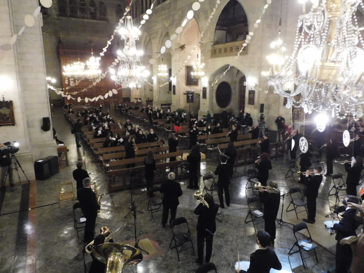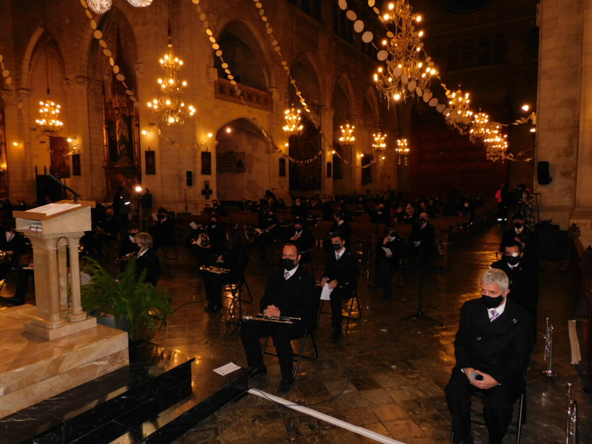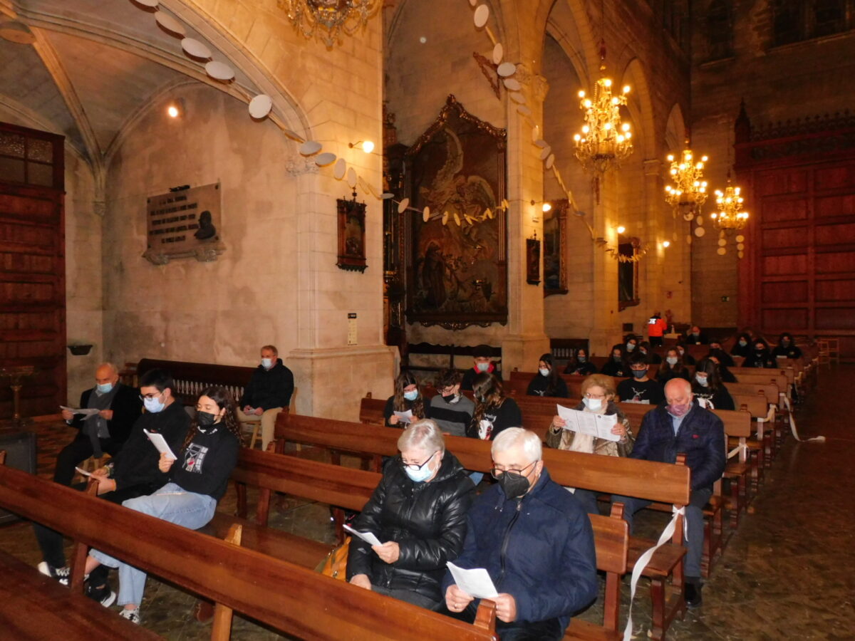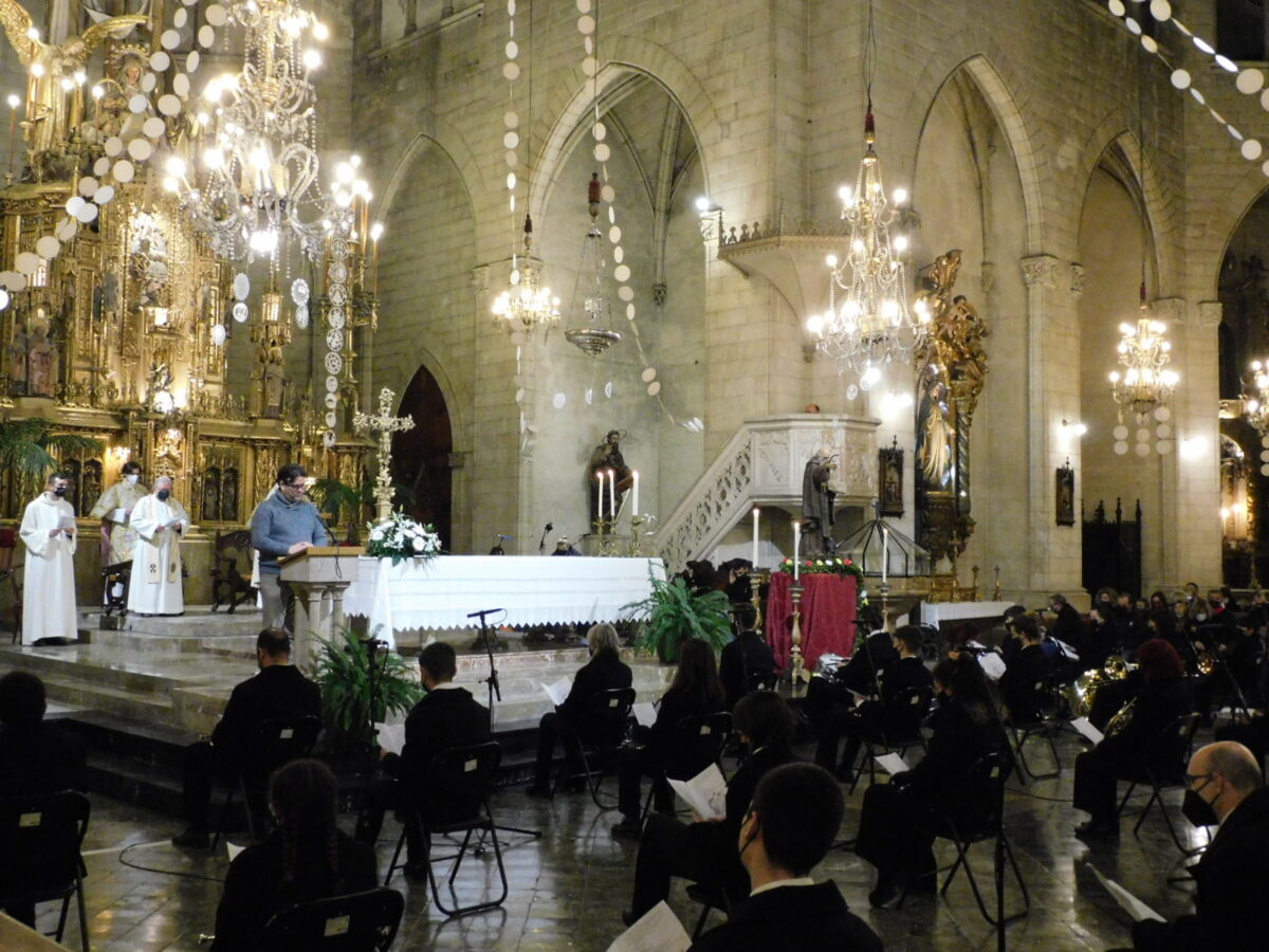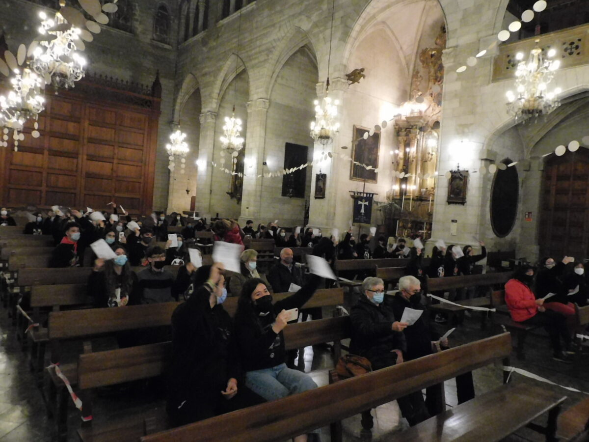 Estuvieron a la altura, aunque la normativa obligó a los asistentes a no levantarse de la bancada mientras se estuviese clamando al santo. Aun así, con los folletos en alto, los asistentes tomaron las riendas de la situación, desfogando sus gargantas y alabando constreñidos en una baldosa toda su devoción a Sant Antoni. Ondeaban las hojas del santo canto sobre las cabezas de los feligreses manacorins. La Banda en pie coreaba los sonidos, mientras Antònia Bassa dirigía la espectacular orquesta. El chupinazo fue metódico y compasado por todos. La voz en uno, aun faltando volumen, todos se unieron a la causa y, ‘els vilans de Manacor’ fueron representados en la Iglesia Nostra Senyora dels Dolors con escrupuloso esmero y orgullo. Orgullosos todos aplaudieron el final, en memoria de tantas ansias de celebrar la popular fiesta en comunidad.