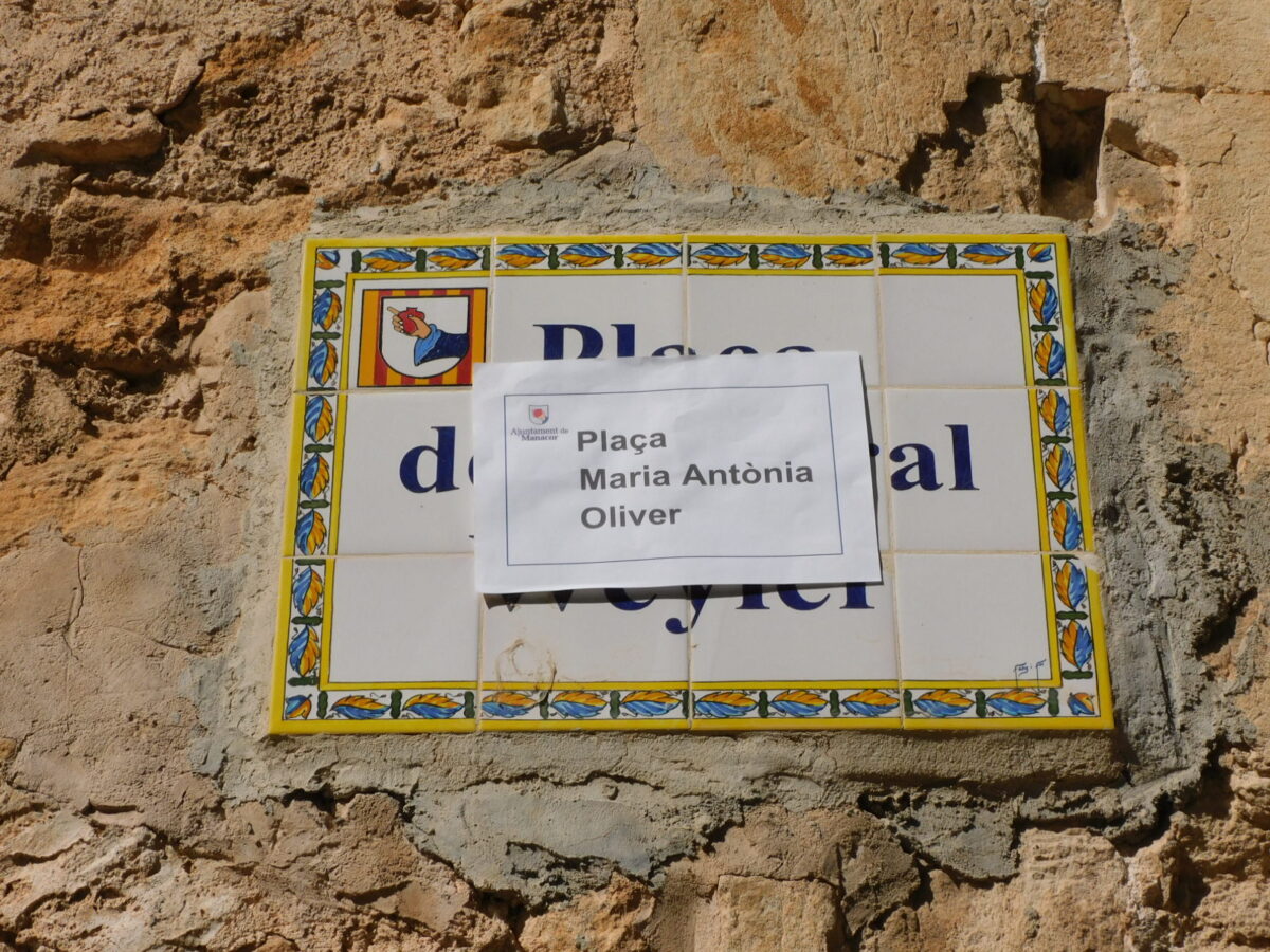 Al mateix temps que es duen a terme les activitats del capvespre, part dels membres participants de la festivitat aprofitaren per mobilitzar-se i reivindicar-se aferrant a sobre la placa de la plaça General Weyler un imprès de placa amb el nom de l’escriptora Maria Antònia Oliver, filla predilecta del municipi, que recentment ens va deixar. El senyor Weyler, fill il·lustre de Manacor i conegut també per ser un dels impulsos i creadors dels camps de concentració a finals del segle XIX, pareix ser un dels escollits per ser tret de la placa per la seva controvertida història. Alhora, es reivindicà amb aquest acte la incorporació de més figures femenines als carrers de rellevància dins la història del municipi, i entre tantes destacades s’escollí la gran escriptora Oliver.