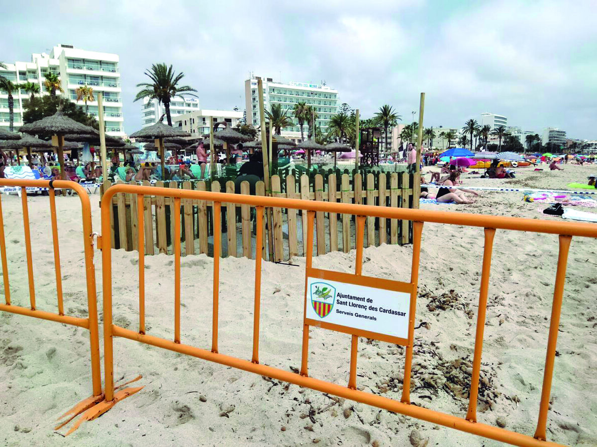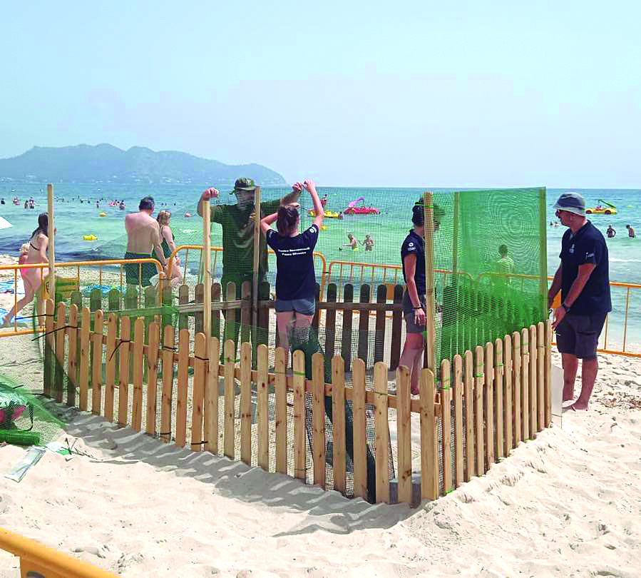 Els agents del Consorci de Recuperació de Fauna de les Illes Balears COFIB han estudiat el niu que es va trobar el passat divendres i que es mantindrà en un espai tancat per evitar possibles danys als ous de tortuga.