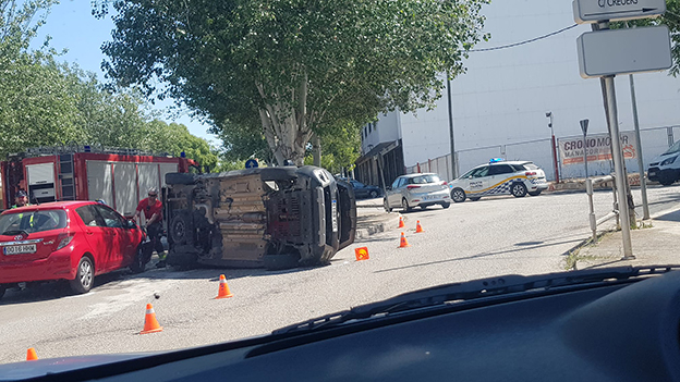 Un accidente provoca el vuelco de un vehículo en via Palma