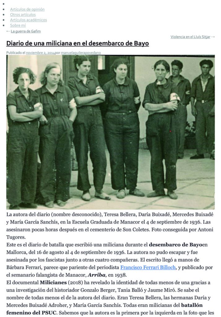 – Al principio de la apertura hacia el actual Estado Democrático, pude hablar con hermanos y algunos descendientes de las personas fusiladas, pero solo en lo referente a las cinco enfermeras, suceso que se contaba en voz baja como un secreto, y nadie me habló de que se hubieran fusilado otras mujeres naturales de Manacor o de pueblos vecinos…