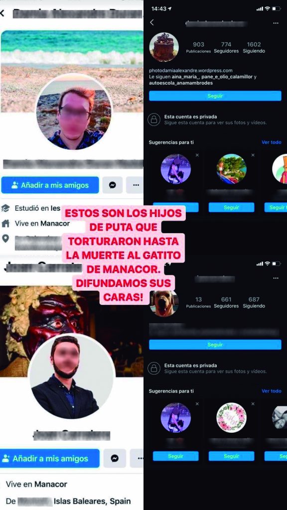 Nada más conocerse la noticia y publicada en los periódicos, comenzaron a aflorar por las redes sociales toda clase de insultos a los presuntos responsables de la muerte del gato, es decir, la presunción de inocencia pasó a no existir para muchos y eran sentenciados telemáticamente.
